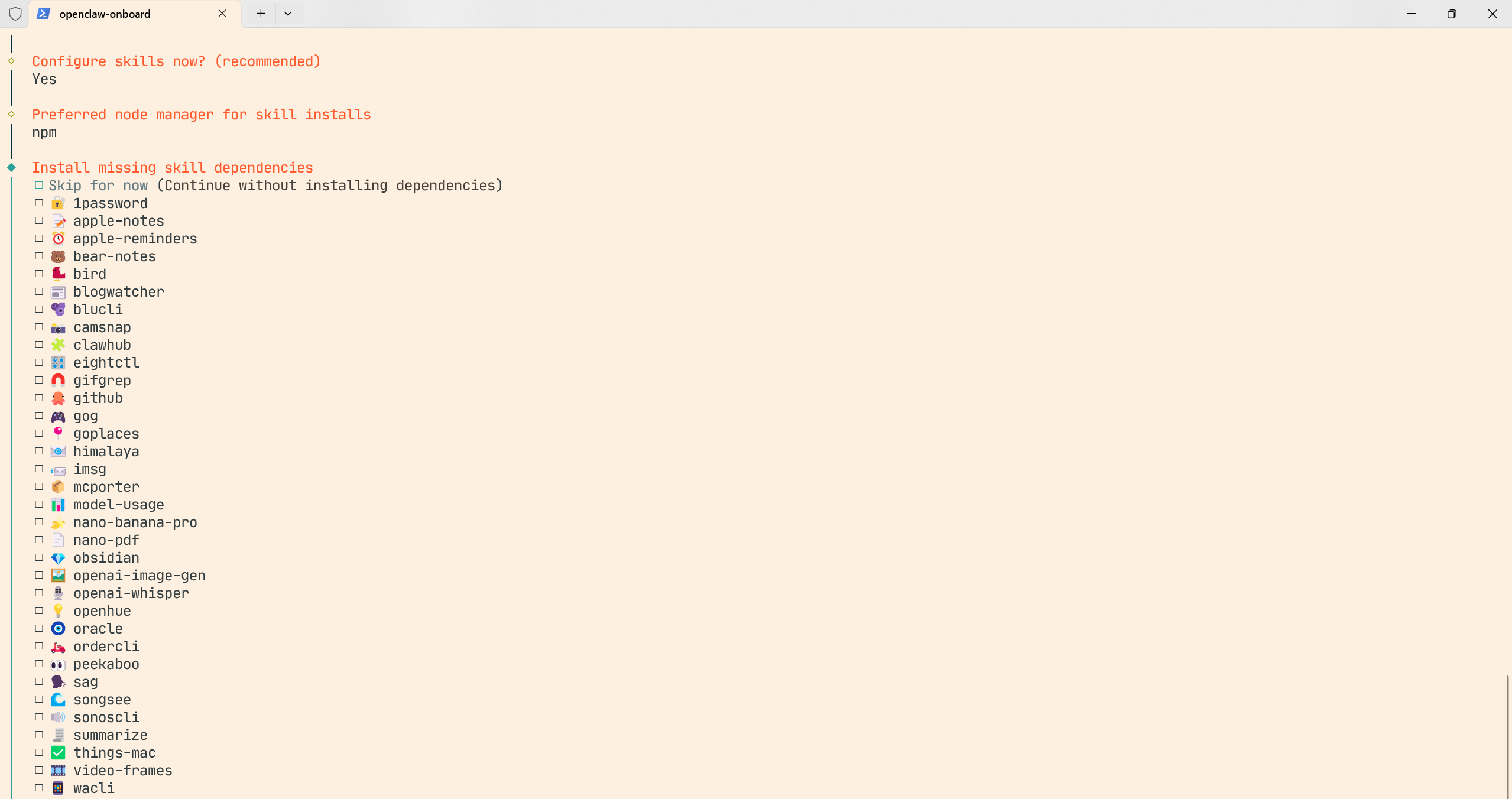 选一些自己喜欢的 skills,也可以直接跳过,使用空格按键选择